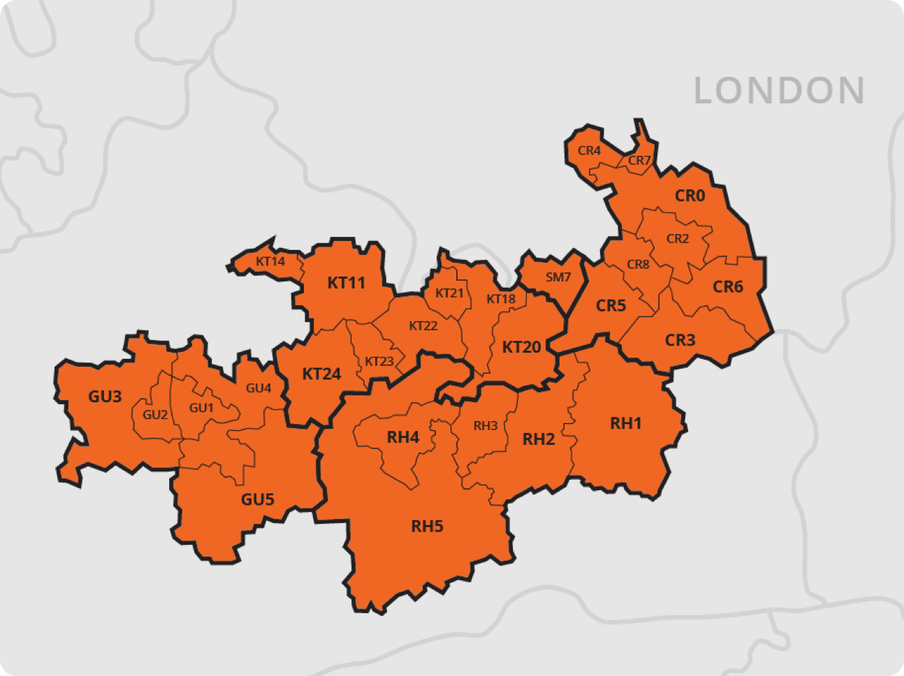 TN1 TN2 TN4 TN9 TN10 TN11 TN12 TN13 TN14 TN15 TN16 CR0 CR1CR2 CR3 CR4 CR5 CR6 CR8 SE2 SE3 SE4 SE6 SE7 SE8 SE9 SE10 SE12 SE13 SE14 SE18 SE19 SE20 SE21 SE22 SE23 SE24 SE25 SE26 SE27 SE28 DA1 DA2 DA3 DA4 DA5 DA6 DA7 DA8 DA9 DA10 DA11 DA12 DA13 DA14 DA15 DA16 DA17 DA18 ME1 ME4 ME5 ME6 ME7 ME8 ME14 ME15 ME16 ME18 ME19 ME20 BR1 BR2 BR3 BR4 BR5 BR6 BR7 BR8 SM7 GU1 GU2 GU3 GU4 GU5 RH1 RH2 RH3 RH4 KT11 KT14 KT18 KT20 KT21 KT23 KT24